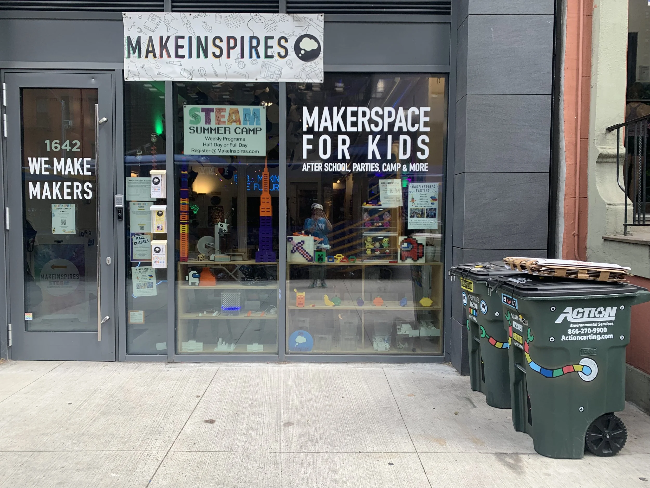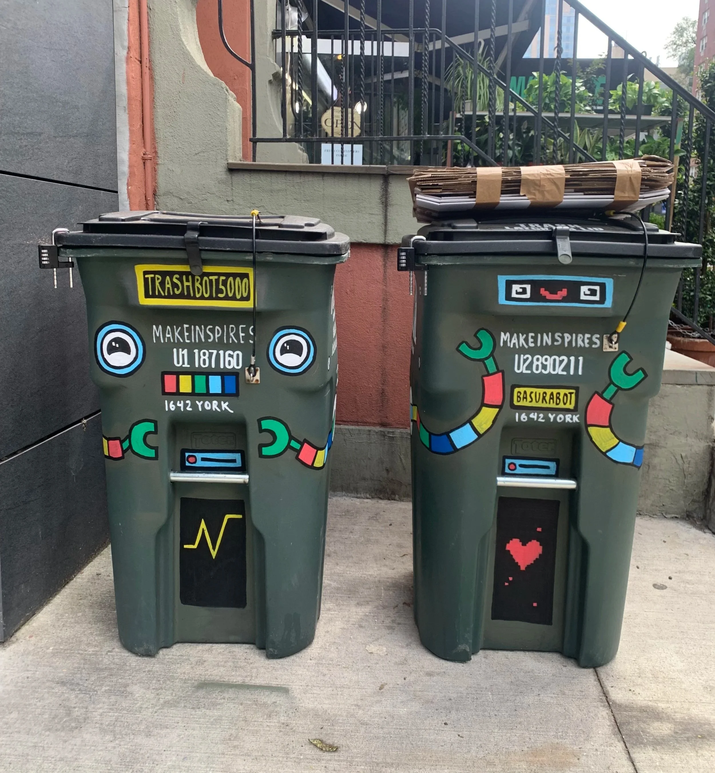 These garbage can robots were commissioned by MakeInspires, a makerspace and STEAM learning center based in New York State, with locations around NYC and Westchester County.